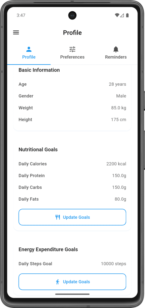 The app suggests 10,000 steps per day as a starting point, which is a common baseline. But you might want more or less depending on where you’re at right now. If you’re currently averaging 4,000 steps, jumping to 10,000 overnight isn’t realistic. If you’re already hitting 12,000 regularly, that goal won’t push you.